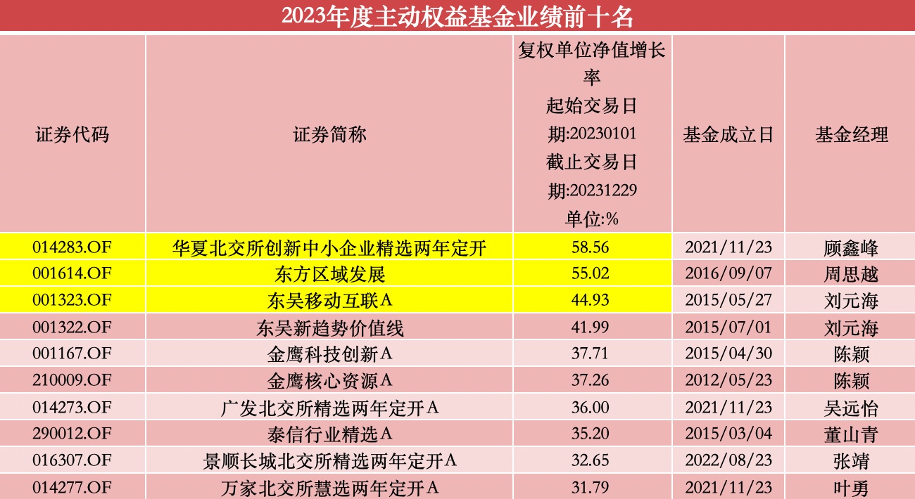 2023年行情收官,年度基金事迹名次厚爱出炉。